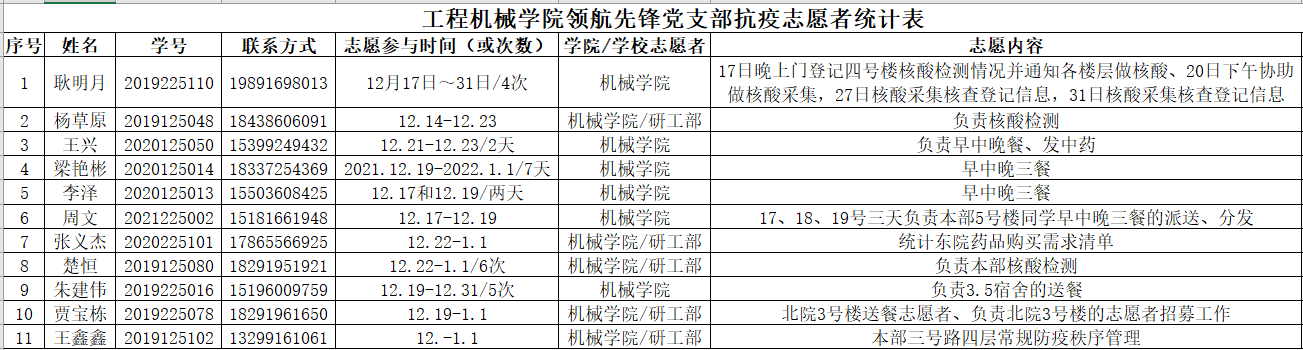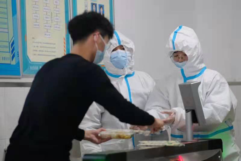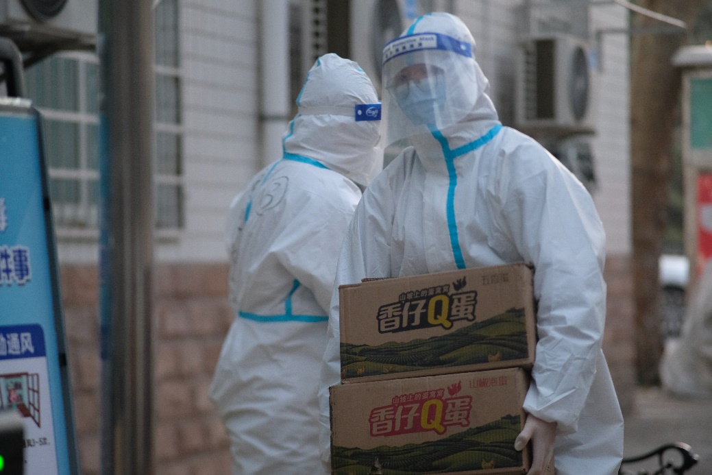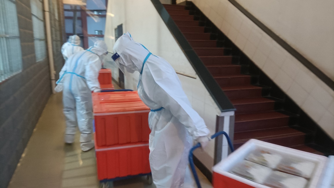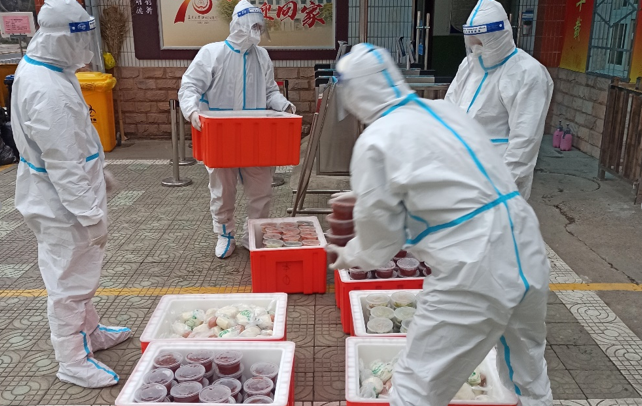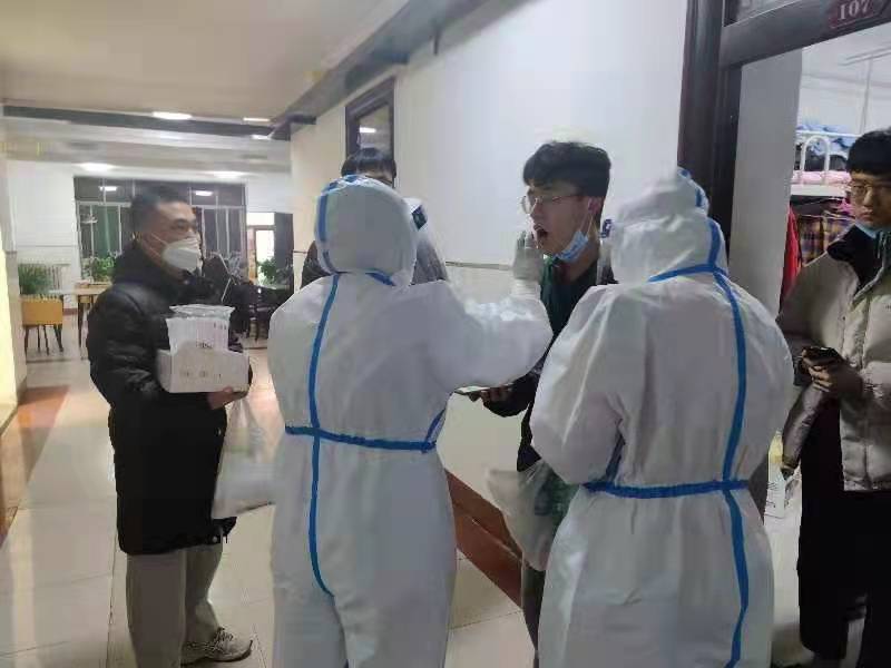 清晨,在同学们还在梦乡的时候,支部的志愿者们已经严阵以待,在学校的统一安排下,为隔离的同学们准时送上一日三餐,为全员核酸检测贡献力量。寒冬刺骨,暖心的大白们却坚守岗位,为同学们的健康和安全保驾护航,在做好自身防护的同时为同学送上温暖与感动。面对当前严峻的形式,志愿者们切实展现担当作为,把疫情防控作为巩固扩大党史学习教育成果的重要检验、“我为同学办实事”的生动实践,为坚决遏制疫情扩散蔓延提供坚强有力的保证。他们虽逆风而行,却向阳而生、绽放光彩。