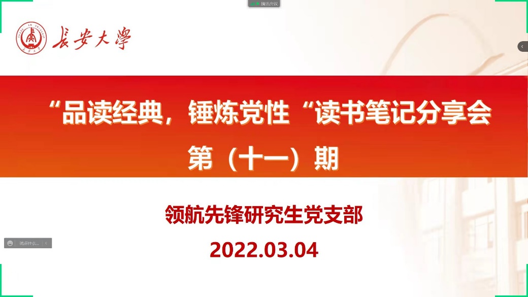 2022年3月4日上午11:00,黑料不打烊 领航先锋党支部组织支部成员线上开展了第十一期读书笔记分享活动,本次活动由支部成员曹壮壮同志做读书笔记分享。支部全体党员参加了此次活动。