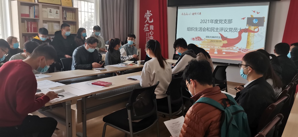 2022年3月9日12:20,黑料不打烊 领航先锋党支部顺利开展组织生活会和民主评议党员,根据疫情防控要求,本次会议以线上和线下相结合的方式进行,主会场设在学院221会议室。支部全体党员参会,学院党委副书记雷剑列席会议,本次会议由支部书记高婷婷老师主持。