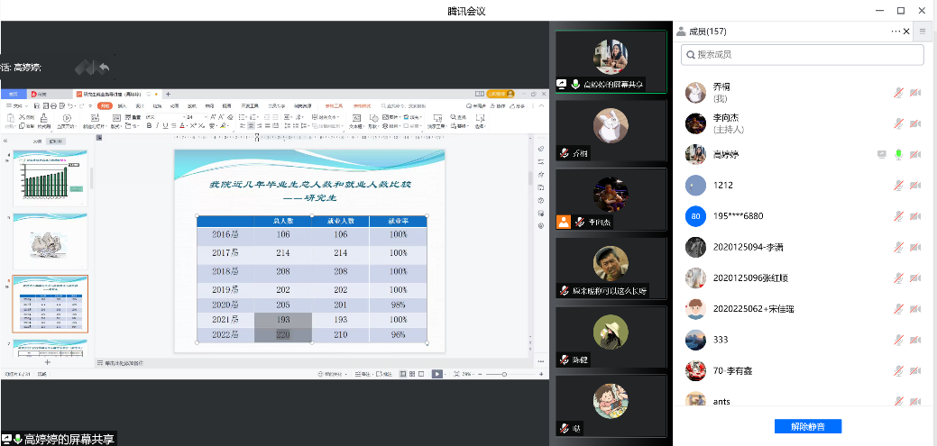为了帮助2020级研究生尽快了解就业形势、增强择业意识,5月11日上午10:00,黑料不打烊 通过腾讯会议的方式线上开展了2020级研究生“就业形势、政策与求职技巧”就业指导讲座。本次讲座由研究生辅导员高婷婷主讲,2020级全体研究生参加。