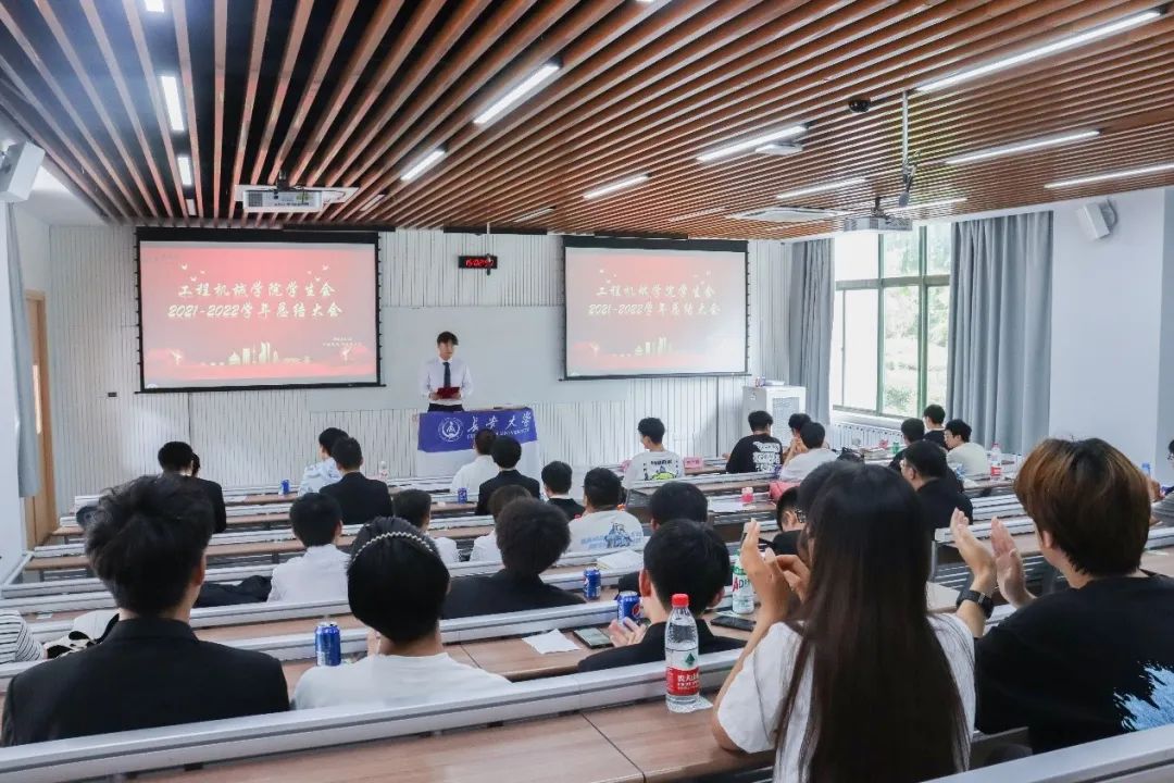 随后田浩良从组织建设、思想建设、学风建设、权益服务建设四个方面,充分总结了2021至2022年学生会举办的各项活动以及进行的部门建设,并对学生会全体成员一年来的辛勤付出表达感谢,同时对新一年工作的顺利开展表示殷切期待。
