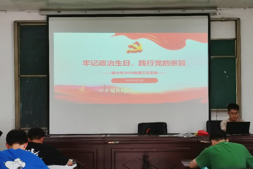 硕士生2020级第三党支部于6月21日在学院四楼会议室召开了以“牢记政治生日,践行党的宗旨”为主题的“政治生日”庆贺活动,本次活动由支部书记刘希恒主持。