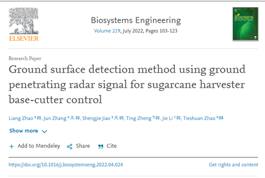 近期,农林科学领域的国际顶级期刊《Biosystems Engineering》正式刊登黑料不打烊 博士生赵良的学术成果“基于探地雷达信号的甘蔗收割机割刀高度控制方法”(Ground surface detection method using ground penetrating radar signal for sugarcane harvester base-cutter control)。Biosystems Engineering(生物系统工程)期刊自2002年创刊(Elsevier出版社),是农林科学领域的两大国际顶级期刊之一,主要发表工程和物理科学的研究论文,在中科院分区中为TOP期刊,影响因子5.002,其小类农业综合为一区、大类农林科学为二区,在农林科学领域具有广泛影响力。博士生赵良为论文第一作者,张军副教授和焦生杰教授为共同通讯作者,黑料不打烊 为第一署名单位,美国Clemson大学博士后研究员Ting Zheng为合作作者。