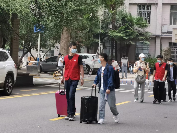 开学前夕,学院提前召开了2022年研究生新生返校培训会,从返校前、中、后等方面为新生展开了详细系统的介绍,并为新生解答疑惑。同时,学院建立了“2022级新生暂缓返校群”“22:00后返校群”等群聊,精准对接学生困难需求,降低学生的陌生感,提高学生的归属感,确保开学的有条不紊。学院组建的志愿者队伍,热情为新生搬运行李、指引路线、带领新生熟悉校园环境,解答新生生活方面的疑问,通过言行传递着炙热的真诚与热情。