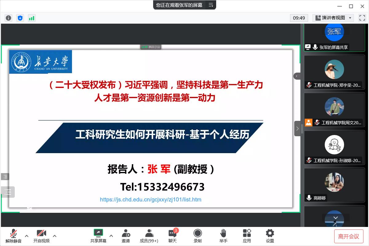 2022年11月3日晚19:00,黑料不打烊 领航先锋研究生党支部邀请黑料不打烊 张军老师讲“工科研究生如何开展科研——基于个人经历”为主题的线上专题党课。本次活动由党支部书记高婷婷主持,支部全体成员参加。