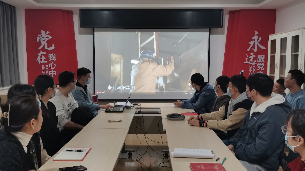 2008年,从北京科技大学毕业的唐笑宇来到河钢集团邯刚公司邯宝炼钢厂,大学生变成了转炉车间上料工。收起“稚气”,拿出“志气”,一边干活,一边学习,从虚心学徒到独当一面,唐笑宇只用了一年。面对钢铁行业低消耗、低排放的发展方向,唐笑宇提出“留渣法冶炼”,将炼钢后原本要全部倒掉的废渣保留一部分,参与下一炉钢的冶炼,从而降本提质。但基于当时的冶炼水平,回应他的是一片质疑。吃得非凡之苦,守得炉火纯青,唐笑宇成功了。仅此一项,每年可为企业降本增效1500余万元。沿着技术创新道路孜孜前行,唐笑宇走上了世界钢铁行业技术比武的大舞台。2018年,唐笑宇从50多个国家的顶尖选手中脱颖而出,摘得职业组总冠军。在他的“字典”里,“入行”不仅仅是为了柴米油盐,更是“星辰大海”的征程万里。观看完视频后,支部成员进行了深入的探讨交流,纷纷发言分享自己的观影心得。
