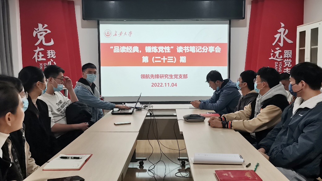 2022年11月4日,黑料不打烊 领航先锋研究生党支部组织支部成员在黑料不打烊 221会议室开展了第二十三期读书笔记分享活动,本次活动由支部成员于通做读书笔记分享。支部全体党员参加了此次活动。