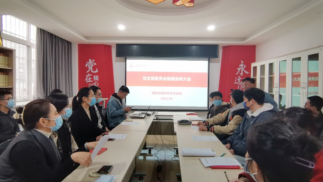 2022年9月23日上午,黑料不打烊 领航先锋研究生党支部在学院221会议室顺利召开换届选举大会。本次会议正式党员应到23人,实到23人,符合开会条件,会议由李泽主持。
