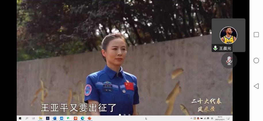 2022年12月15日,黑料不打烊 领航先锋研究生党支部组织支部成员线上观看视频《二十大代表风采录--王亚平:采撷最璀璨的星》。
