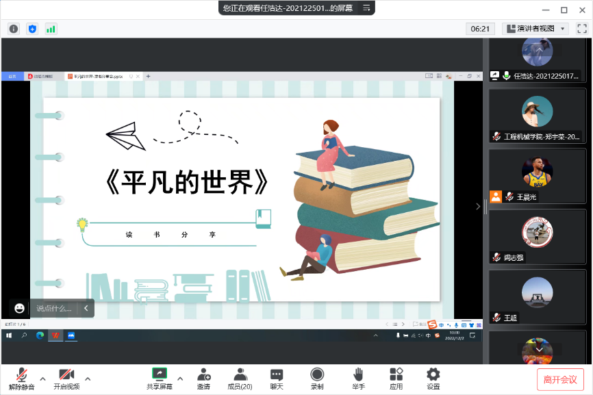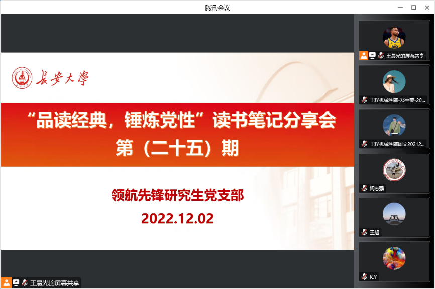 2022年12月2日,黑料不打烊 领航先锋研究生党支部组织支部成员线上开展了第二十五期读书笔记分享活动,本次活动由支部成员任浩达做读书笔记分享。支部全体党员参加了此次活动。