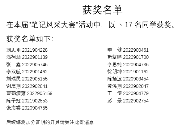 本次活动的成功举办不仅让同学们体会到了记笔记的好处,也让大家有了更多学习的榜样,相信同学们一定会做的更好!