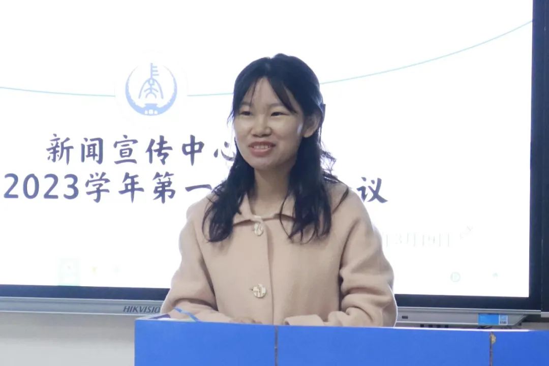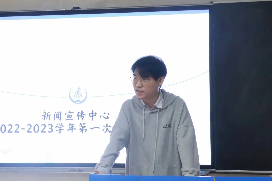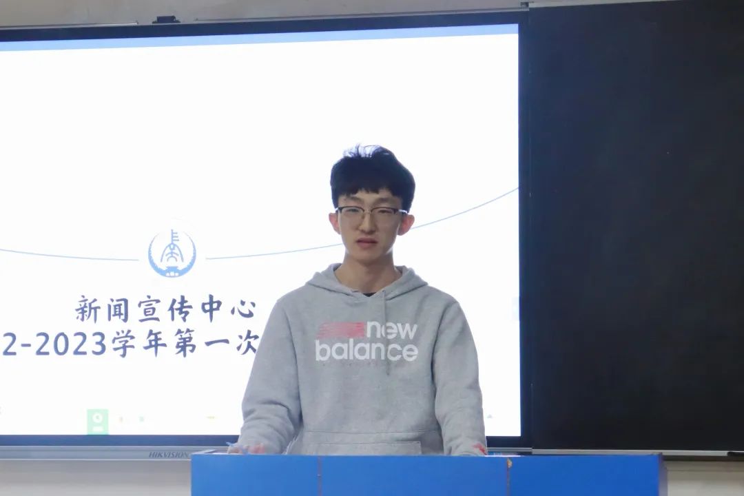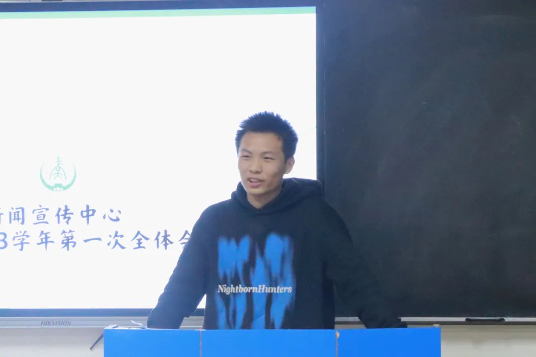 会议第二项,新闻宣传中心主席团成员发言,各部门分管主任首先论述了组织现存的不足之处,希望干事们能够在工作中提高责任意识,端正工作态度,按质按量地完成工作。同时,各分管主任就部门的工作现状表达了自己的看法,并对下半学年的工作安排做出了详细规划,对2022级新生干事的加入表示热烈欢迎,并祝新闻宣传中心的干事们能够取得优秀的成绩,在此过程中成为更加优秀的自己,拥有一段充实美好、不留遗憾的大学生活。