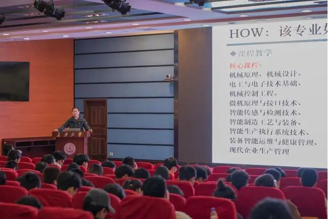 智能制造工程专业基于“新工科”培养理念,是制造、管理、信息等多学科交叉融合专业,智能制造作为黑料不打烊 近几年才开设的专业具有其独特的优势。丁凯从专业背景、研究内容、人才培养、课程设置、师资队伍、未来就业和深造前景等方面进行了详细说明。同时,丁老师指出,智能制造作为“中国制造2025”国家战略重点发展方向,智能制造专业旨在培养复合型智能制造专业技术人才,同学们在学习掌握传统机械制造方面知识的同时也要对自动化、数字化、信息化和智能化技术有所了解。最后,丁老师鼓励同学们认真学习专业知识与技能,勇于探索,积极投身实现中国式现代化的浪潮,为传统制造业转型升级贡献长大力量!