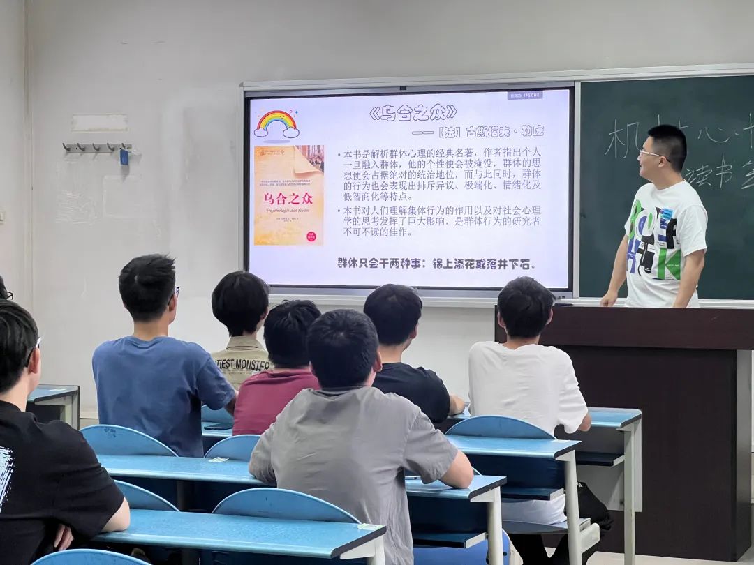 随后,同学们陆续上台分享了他们日常看过的书籍,同时分享了这些书籍中心理方面的知识。分享的同学讲述绘声绘色,大家受益匪浅。参与读书会的同学各抒己见,积极交流。