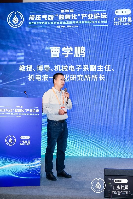 叶敏应邀在液压气动“数智化”产业论坛中致开幕词,指出数字化液压关键核心技术是工程机械行业生存发展的命脉,而创新又是行业前进的动力和源泉,为实现我国工程机械与流动传动控制技术的高质量发展,共同携手致力于解决流体传动与控制最新技术及其在工程装备领域的应用。曹学鹏作“多通口超高压径向柱塞泵工作特性研究”的报告,简要介绍了学校、学院的基本情况,重点报告了多通口超高压径向柱塞泵的关键技术、工作特性及最新研究进展,着力为工程机械行业“卡脖子”技术提供解决方案,获得业内同行的肯定和好评。