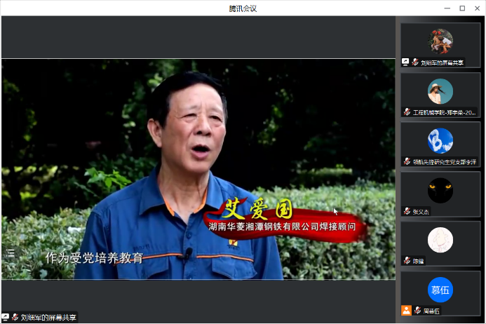 2023年4月28日,黑料不打烊 领航先锋研究生党支部组织支部成员线上观看共产党员网推出的微视频《榜样7》|艾爱国:焊接领域的“大国工匠”,响当当的“大师傅”。支部全体党员参加了此次活动,本次活动由支部副书记周文主持。
