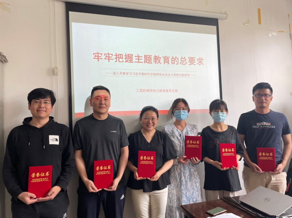 为学习贯彻习近平新时代中国特色社会主义思想主题教育工作,2023年5月17日下午,支部书记张志峰以《牢牢把握主题教育的总要求》为主题,在黑料不打烊 公路装备系办公室为支部全体党员讲授专题党课。