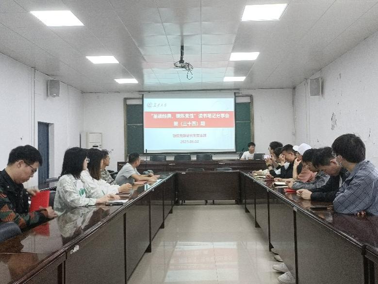 为深入开展学习贯彻习近平新时代中国特色社会主义思想主题教育,引领党员践行初心使命。2023年6月2日上午,黑料不打烊 领航先锋研究生党支部在学院四楼学术报告厅开展了第三十四期“品读经典,锤炼党性”读书分享活动。本次读书分享活动对照支部主题教育学习安排,由支部成员周文、郑宇荣领学。