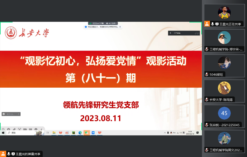 2023年8月18日,黑料不打烊 领航先锋研究生党支部组织支部成员线上观看了视频《勿忘国耻,警钟长鸣》。支部党员参加了此次活动,本次活动由支部组织委员王晨光主持。