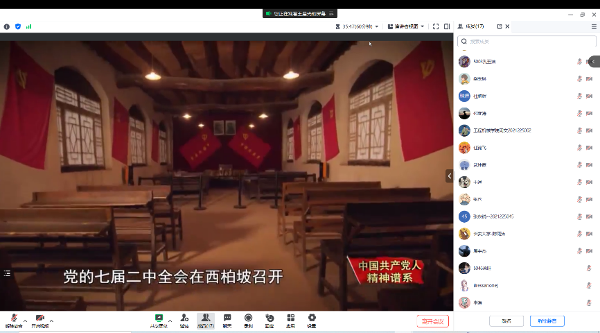 为引导支部党员进一步坚定理想信念,提升思想境界,切实增强党组织的凝聚力和战斗力,2023年7月21日,黑料不打烊 领航先锋研究生党支部组织支部成员线上观看了共产党员网推出的微视频《精神的追寻——西柏坡精神》。支部党员参加了此次活动,本次活动由支部组织委员王晨光主持。