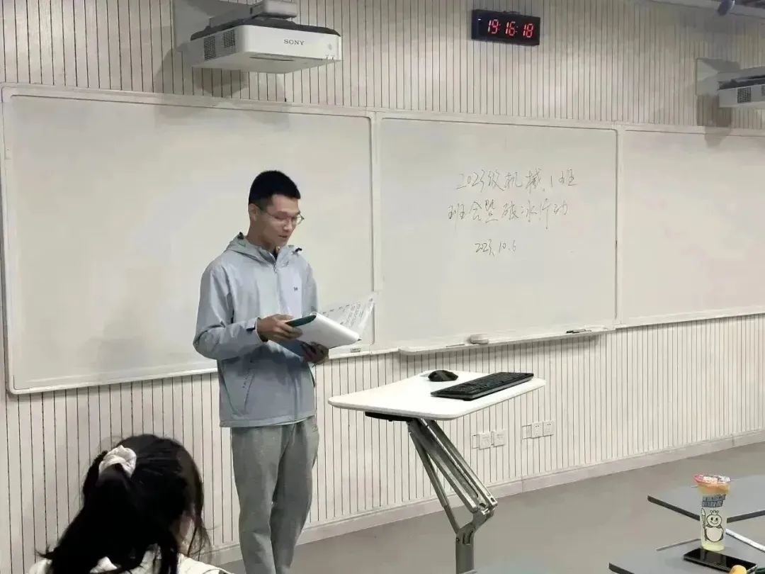 班会伊始,左意老师首先向同学们强调了学习的重要性,肯定了此次活动有助于打造学风优良、互帮互助的班级氛围。同时鼓励同学们积极参加课外活动,加强体育锻炼。随后,左意老师还分享了自己的大学生活经验,提出了“如何做好大学生涯规划”的宝贵建议。
