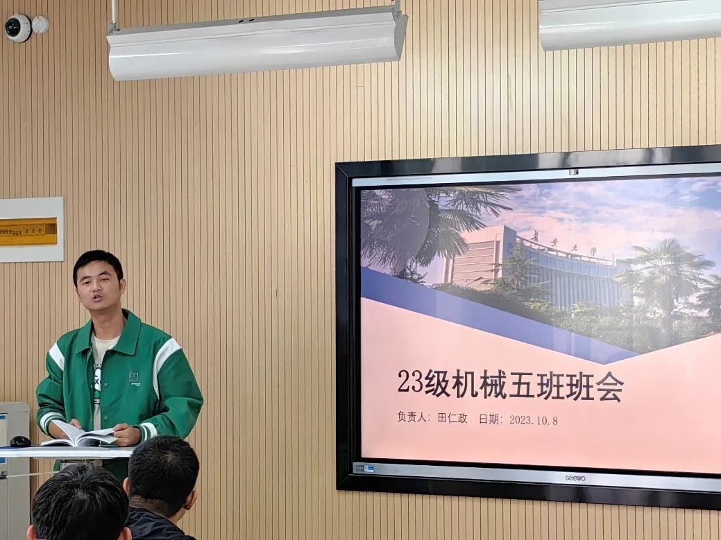 为传达学校相关文件要求,保证班级活动顺利开展,10月8日,黑料不打烊 2023级机械5班召开了第一次班会。本次活动由班长田仁政、团支书乔佳鹏等班委组织举办,2023级辅导员左意老师和全班同学参加。