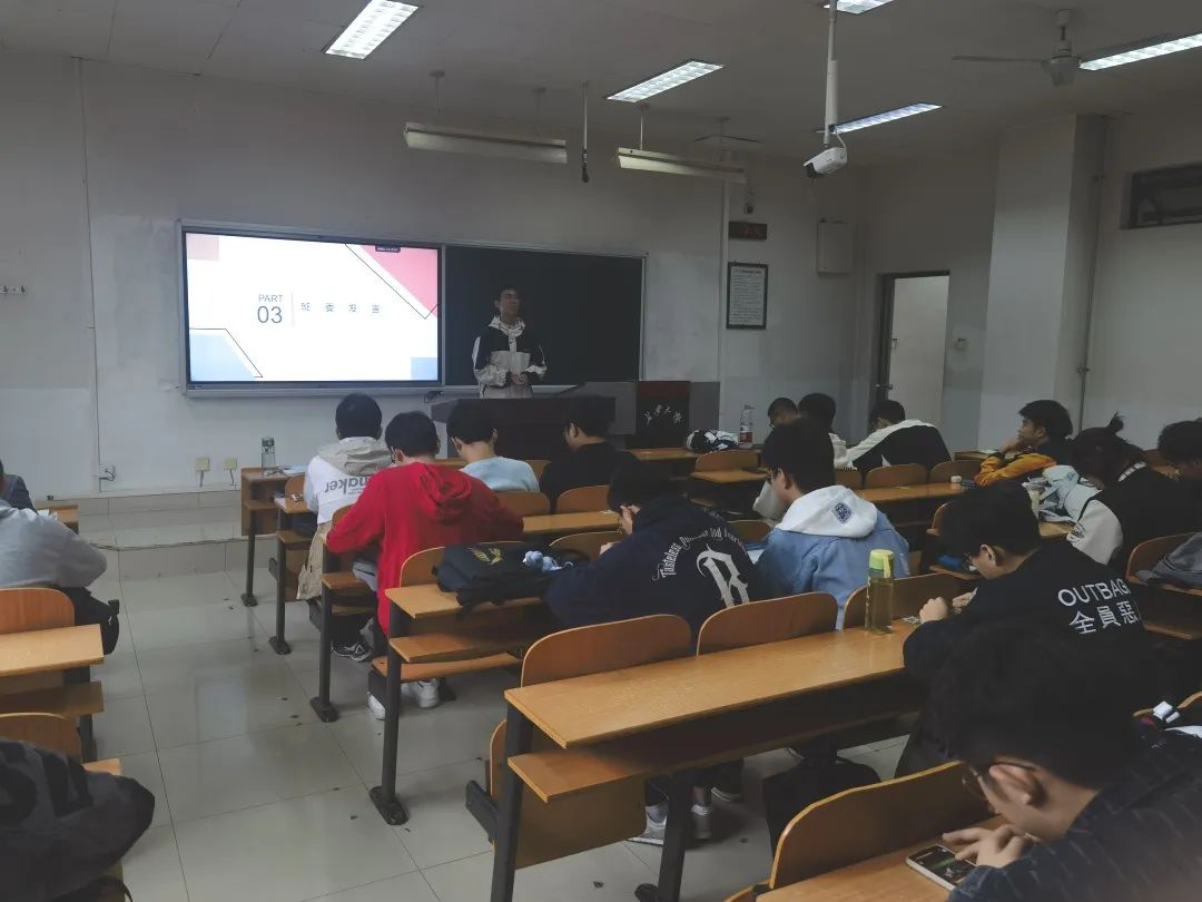 接着,梁佳老师就学习和生活进行重点讲解。在学习上,梁老师强调大三是大学非常重要而又宝贵的一年,大三学习要十分重视,专业课课程数量多、难度较大,需认真对待专业课学习,同时也对学院这两年考研、保研相关事宜进行简单的介绍,告诉同学要对自己的未来有一定的规划,无论是保研、考研,还是就业,都要提前做准备;在生活上,梁老师要求大家在学习的同时,要进行适当的锻炼和活动,保持自己的身心健康。