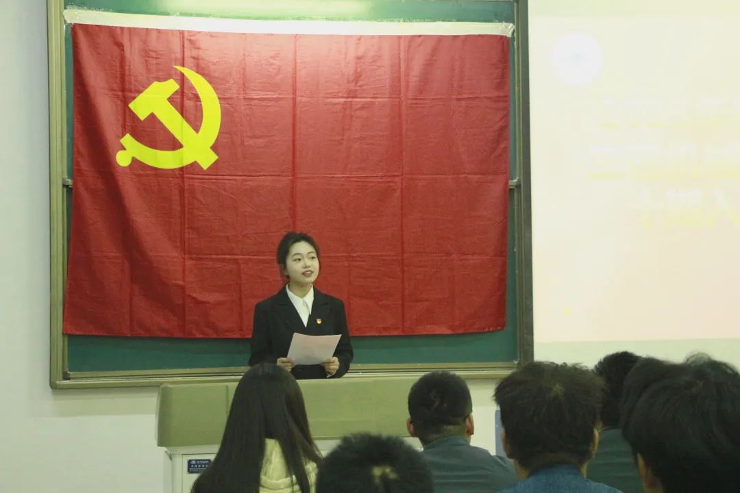 典礼在庄严的国歌声中拉开帷幕,2022级学生马玥瑶作为学员代表发言,她代表全体学员承诺将以身作则,遵守党课纪律,高效完成学习任务,争取早日成为一名合格的中国共产党党员,在建设中国式现代化的浪潮中贡献青春力量。