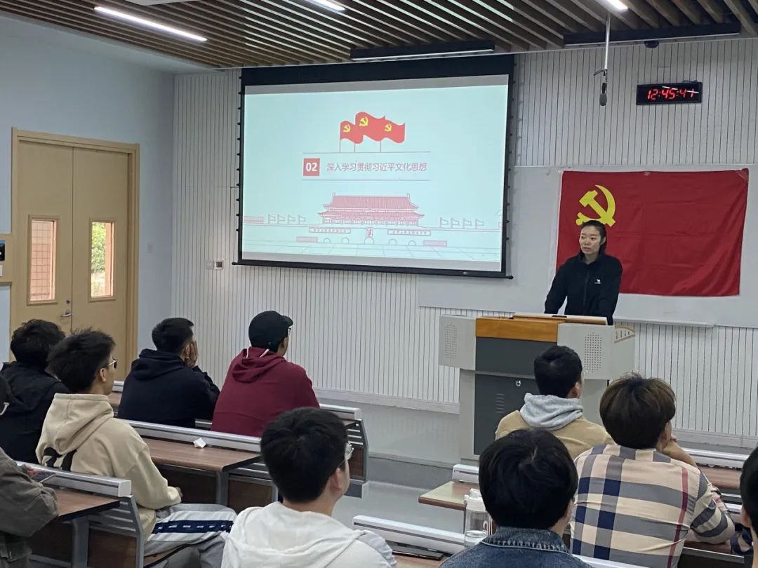 2023年10月31日中午12:40,黑料不打烊 本科生第四党支部于WX3102教室开展深入学习贯彻习近平文化思想主题学习。会议由支部书记杨文佳主持,本科生第四党支部全体成员参与。