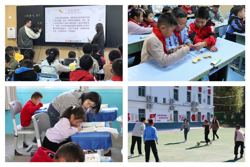 会后,党支部成员为玉皇庙镇中心小学学生开展第六期科技小课堂——《水果电池》,带领同学们完成了“水果电池”的制作,通过简单易懂的语言向同学们讲解其中的化学原理,以及生活中安全用电的重要性。党支部成员辅导同学们完成课后作业,并开展了“足球友谊赛”等丰富多彩的团辅活动。