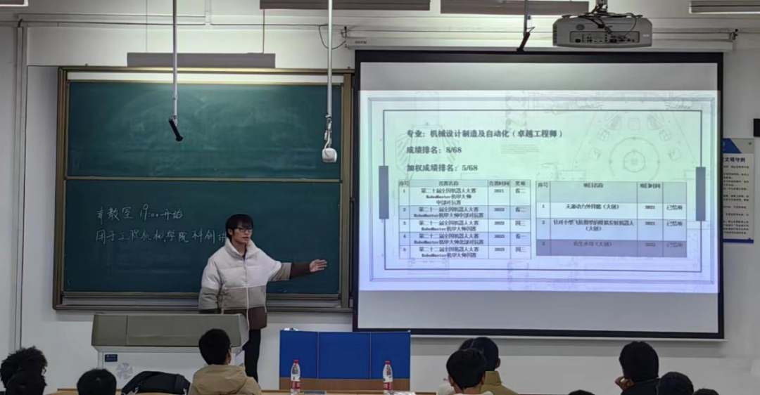 在活动开始,周志垚佳向同学们介绍了全国大学生机器人大赛的相关情况,并谈到了参赛的注意事项,正所谓“一年备赛,只为最后亮剑”,参加机器人大赛有利于增长同学们的见识并开阔视野,除此之外,他也提到在参加比赛时,要注意团队合作,更要谨慎思考后再做出选择。