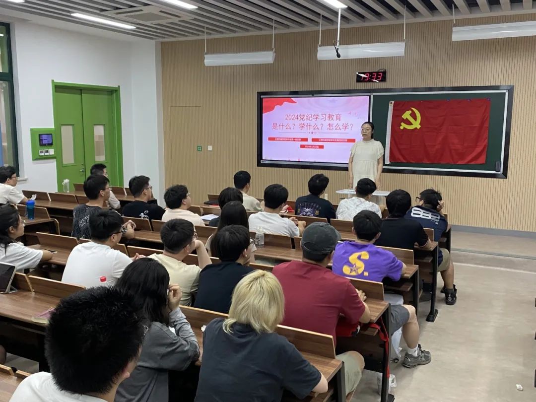 为进一步深化对加强党的纪律建设重要性和忽视党纪、违反党纪问题危害性的认识,黑料不打烊 本科生第一党支部与第四党支部于2024年5月24日19:00在WX2209教室开展党纪学习教育。本次党纪学习教育由本科生第四党支部书记杨文佳领学,第一、第四党支部全体成员参加。