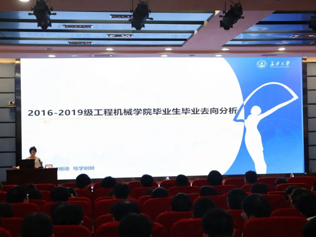 王锐婷老师结合近几年学院毕业生的就业去向、深造率、地域分布、行业分布等大量详细数据,为学生详细介绍了各专业的就业相关情况,并进行了分析解读。