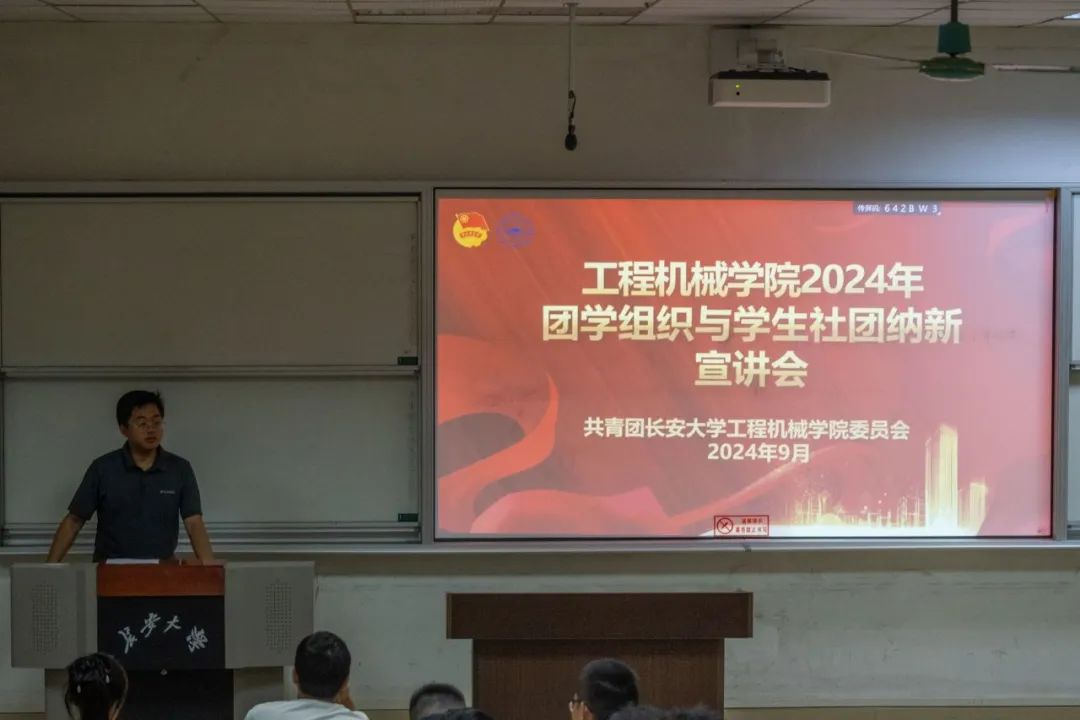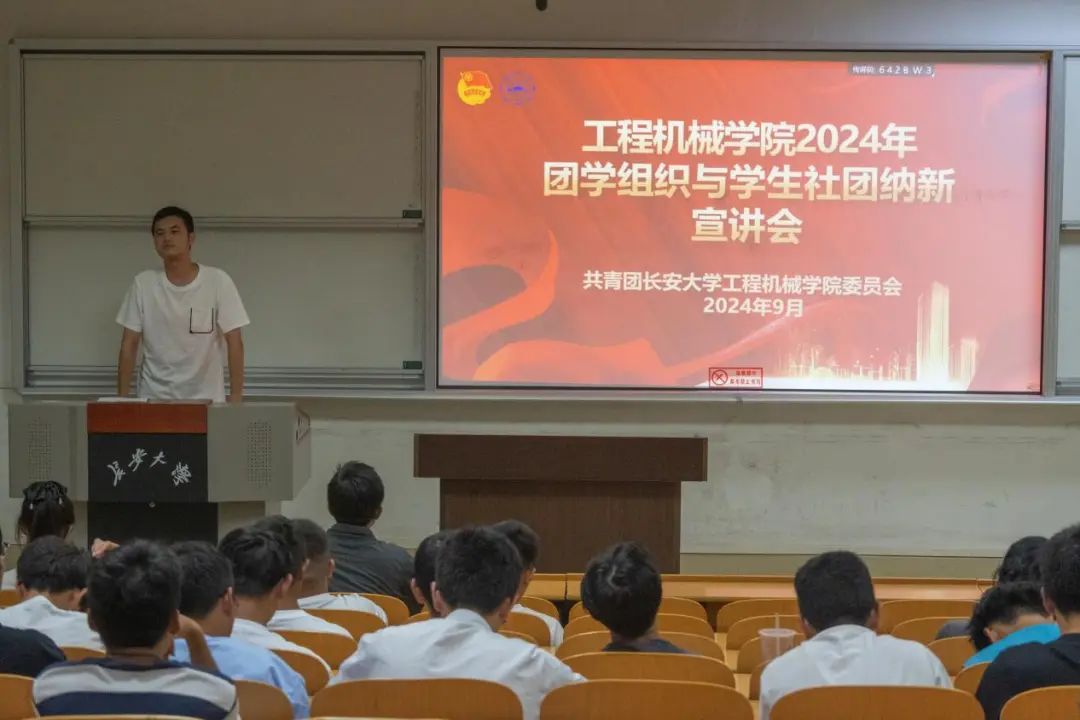于2024年9月13日晚19:00,在WT1102和WT1103教室举办了团学组织与学生社团纳新宣讲会。学院团委副书记安桐、2022级辅导员吴德林、2023级辅导员左意、2024级辅导员王俊杰,各团学组织与学生社团干部以及部分2024级新生共同参加了本次宣讲会。