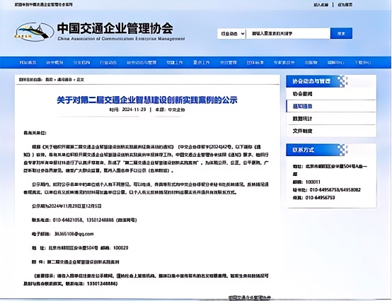本次评选活动由中国交通企业管理协会组织,旨在征集和展示交通企业在智慧建设方面的创新实践案例,推动交通企业的智慧化建设,鼓励企业在智慧交通领域进行创新实践,提升行业整体技术水平和应用能力。此次入选“第二届交通企业智慧建设创新实践案例”,将进一步促进学院在数字技术与交通行业上的深度融合,加速交通基础设施数字转型、智能升级、融合创新,积极推进交通领域的智慧化建设。