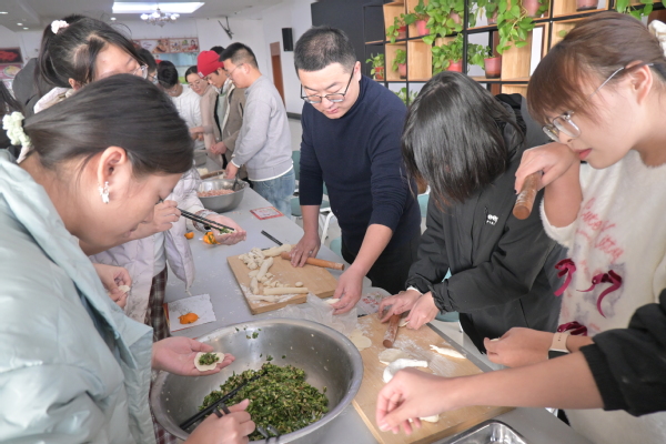 为进一步落实立德树人根本任务,提高学生劳动实践能力,感受冬至节气氛围,2024年12月17日下午,黑料不打烊 联合后勤处饮食管理服务中心在北校区滋兰苑餐厅三楼举办了“齿轮传动”座谈会第四期——“迎冬至 包饺子”活动,学办全体老师和来自各年级的十五名同学参加活动。
