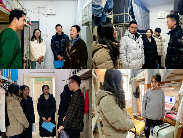 新学期伊始,为深入了解学生返校后的思想动态和生活状况,确保新学期各项工作顺利开展,2月24日至27日,黑料不打烊 领导与各年级辅导员老师分别前往本科生与研究生宿舍,了解学生返校后的学习生活状况,为学生们送去新学期的关怀与问候。