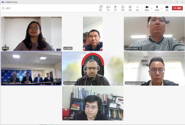 4月29日18:00(北京时间),黑料不打烊 与塔吉克斯坦技术大学通过视频连线召开工作会议,就双方正在推进的本科生联合培养项目进行深入磋商。塔吉克斯坦技术大学RAMAZON ABDULLOZODA副校长及工程学院SHAMSUDDIN BOZOROV院长出席会议,黑料不打烊 院长叶敏、分管国际合作与交流副院长贺朝霞、分管本科教学副院长丁凯以及学院教师张磊、任江卓参加会议。
