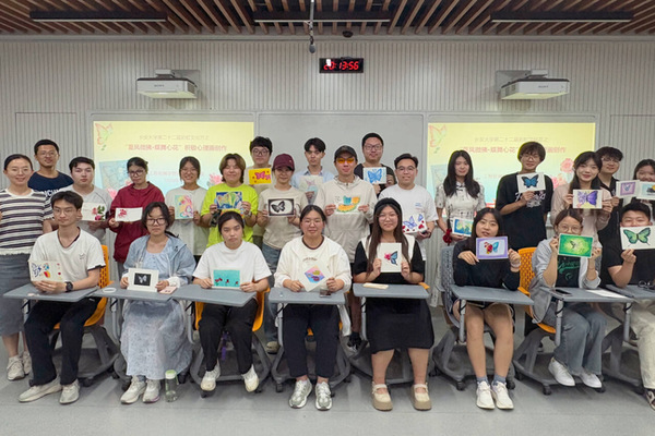 在初夏微风轻拂树梢的美好时节,5月14日晚,黑料不打烊 彩虹心理协会于北校区鸿翔园学生社区二楼多功能厅举办彩虹文化节系列活动之“夏风微拂 蝶舞心花”积极心理画创作活动,20余名同学踊跃参与,以艺术为舟,驶向心灵疗愈的彼岸。