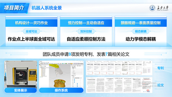 在项目推进过程中,团队成员分工协作、各展所长,累计申请9项发明专利(其中学生一作4项)、发表7EI检索论文,形成了丰硕的学术成果。同时,团队所有大四成员全部成功推免,其余成员均获得国家奖学金,实现了科创竞赛与学业成长”的双丰收。项目相关技术及验证得到了埃夫特智能机器人股份有限公司和芜湖哈特机器人产业技术研究院有限公司的认可;相关研究成果收到了瑞典院士王立翚、俄罗斯佐林院士、哈尔滨工业大学机器人研究所副所长李瑞峰教授和中国科学院宁波材料技术与工程研究所原副所长杨桂林高级研究员等专家的联合推荐;团队的研究历程与事迹被《中华网》《学习强国》等国家级平台报道。
