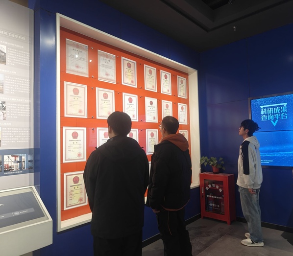 在校史馆的展屏前,小组成员集中观看了红色校史影像资料。当看到老一辈师生在战火中坚持办学、校友们在国家建设一线奋勇攻坚的珍贵画面时,小组成员们肃然起敬,纷纷驻足凝望。黄俊灵感慨道:“从抗战救亡到强国建设,爱国从来都是具体的、行动的。作为工程机械专业的学生,我们更应把这份精神转化为学好专业、服务国家的内在动力。”他的发言引发了同学们的共鸣。
