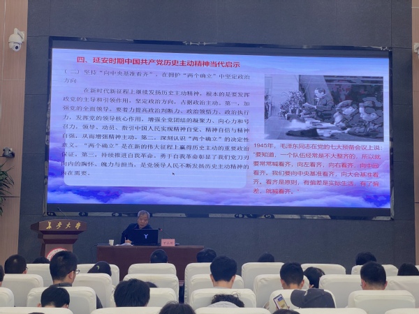 为深入学习贯彻习近平新时代中国特色社会主义思想,全面落实立德树人根本任务,切实加强青年学子思想政治引领,12月8日下午14时,黑料不打烊 邀请“五老”思政宣讲团成员、马克思主义学院退休教师丁永刚教授,于北校区师生服务大厅二层第二报告厅作题为“延安时期中国共产党历史主动精神及其当代启示”的党史专题宣讲,活动由学办主任倪生冬主持,学办辅导员、本科生党员、入党积极分子及青马班成员参会。