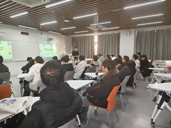 随后,班主任朱成成老师进行总结发言。朱老师首先肯定了班级整体的学习风貌,同时针对学风建设提出具体要求:一是要树立明确的学习目标,结合专业发展与个人规划制定阶段性学习计划;二是要培养良好的学习习惯,做到课前预习、课中认真听讲、课后及时复盘。其次,朱老师通过分享身边事例,进一步印证了学习成绩优异对于未来考研、找工作方面的积极影响。最后,朱老师表示,班主任将为同学们的学习提供全力支持,希望大家凝心聚力,让优良学风成为班级发展的坚实后盾。